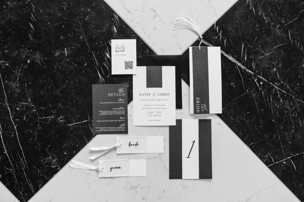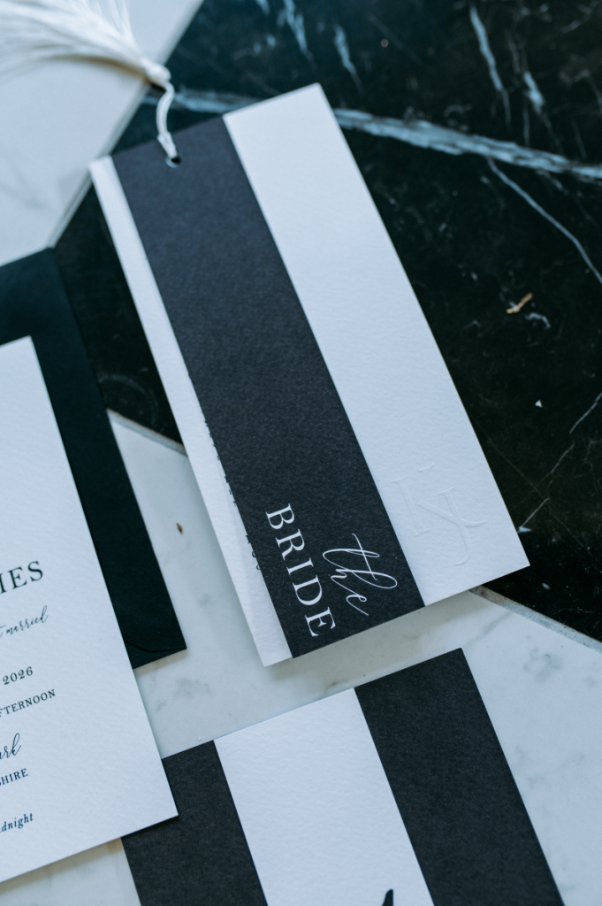Designed by Grace & Bramble, the stationery collection embraces a bold monochrome palette with a refined, editorial feel.