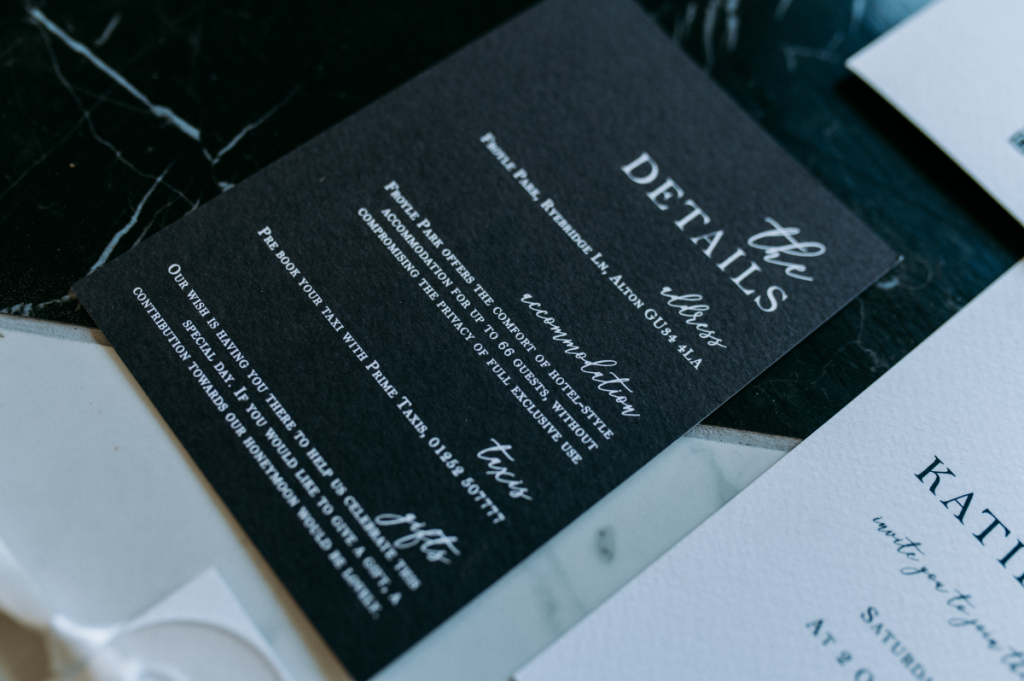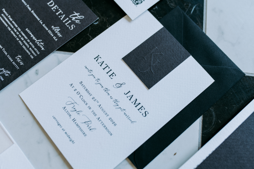 There’s something undeniably timeless about black and white. Effortlessly elegant, endlessly versatile, and always in style — this classic pairing formed the foundation of our latest wedding stationery shoot at the stunning Froyle Park.