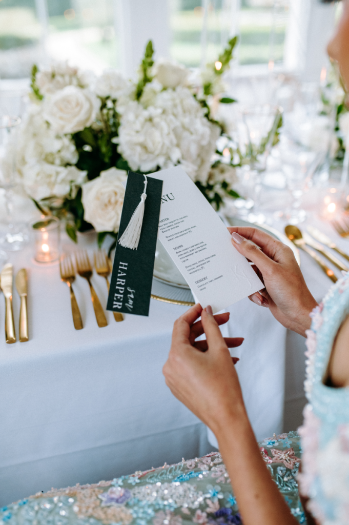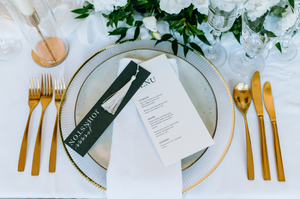 • Elegant place cards and tags with soft, handwritten-style script