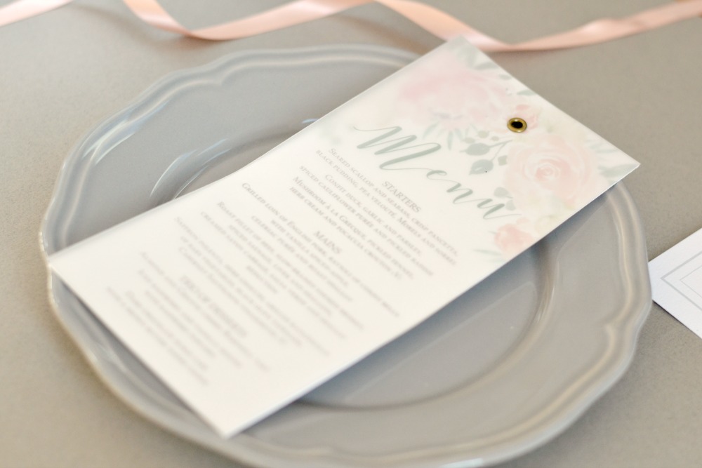 - On the Day Items – Place settings, Menus, Table Numbers, Table Plan, Welcome Sign, Order of the Day Sign, Order of Service, other wedding signs.